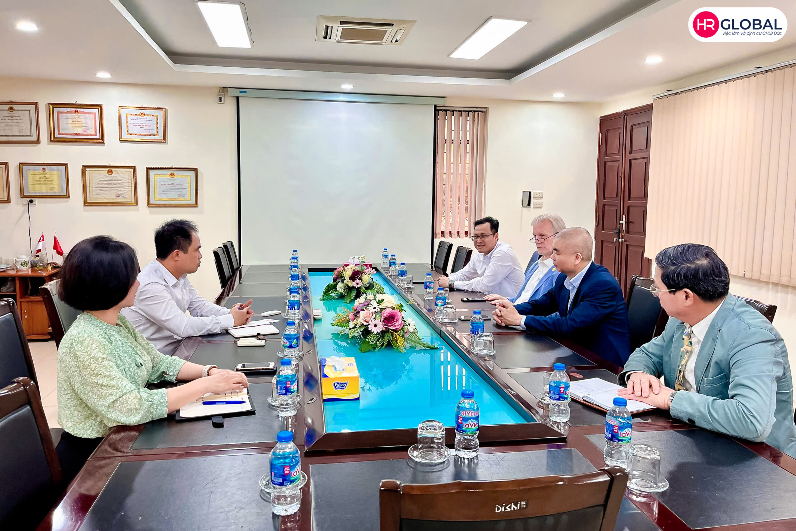 Nhằm thúc đẩy hợp tác và nâng cao chất lượng đào tạo nghề, ngày 26/03, HR Global phối hợp cùng Tập đoàn Avestos đã có buổi gặp gỡ và làm việc với Trường Cao đẳng Kỹ thuật và Nghiệp vụ Hà Nội. Sự kiện đánh dấu bước tiến quan trọng trong việc triển khai đào tạo cho sinh viên sang Đức làm việc theo diện chuyển đổi bằng cấp cùng công tác tổ chức kỳ thi đánh giá tay nghề cho sinh viên theo tiêu chuẩn Đức.